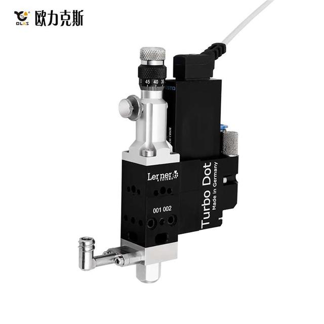 1.歐力克斯引進德國進口高速噴射閥,噴射式點膠閥高精密工藝鑄造,精準噴射點膠工藝,非接觸噴射,膠量精準控制最小劑量為2nl,最大頻率為280Hz;